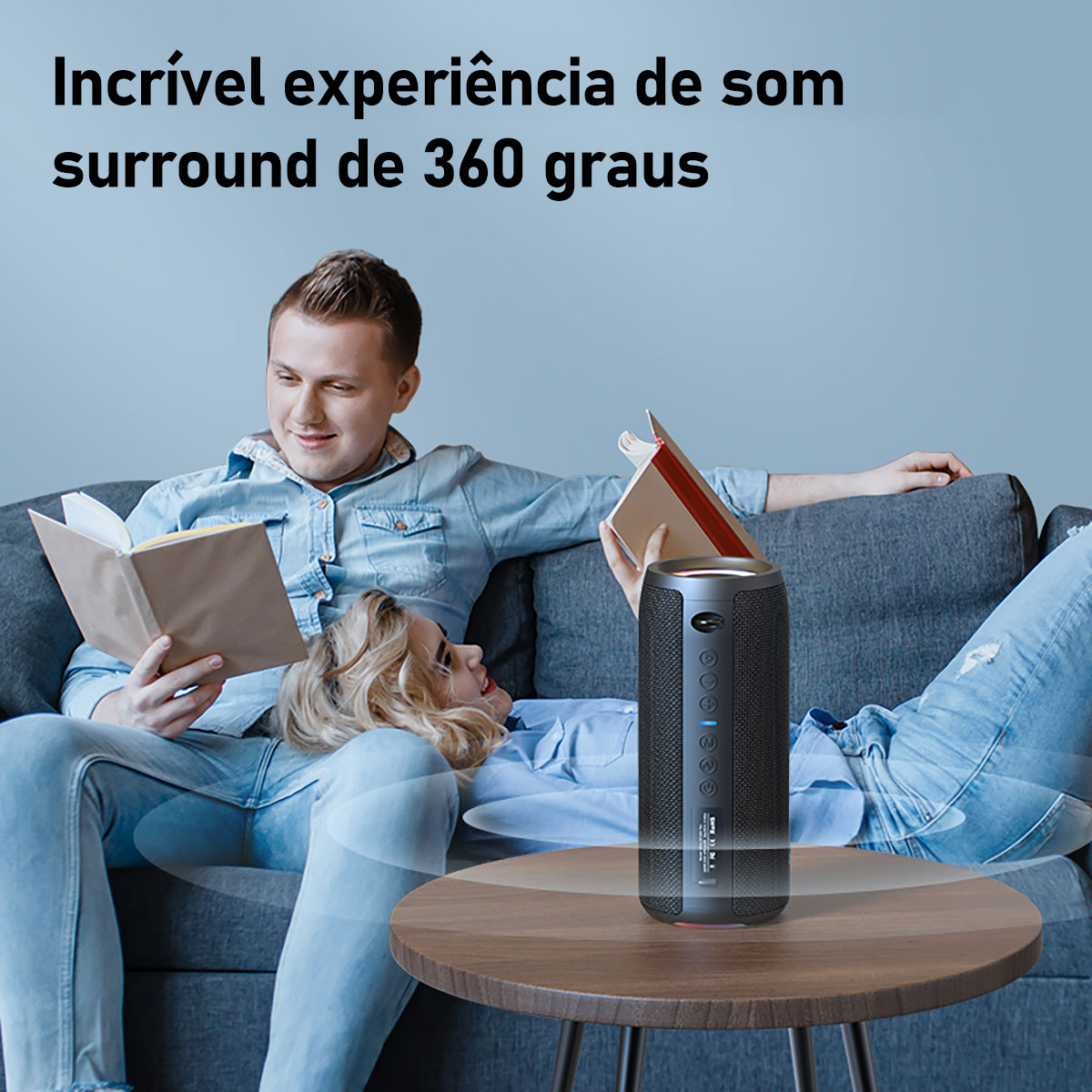 Com 5.200mAh, você curte horas de música sem ficar preso na tomada. Ideal pra quem quer liberdade e som o dia inteiro. 💪